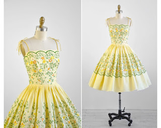 My current favorite Etsy shop is Rococo Vintage. All the dresses are beautifully photographed and carefully curated, I love zooming in on the details on some of the best 1950s dresses I've ever seen. Every piece listed is worth scrutinizing and I like to check back often for new listings. Below is a few delicacies in the current selection but I definitely recommend favorite-ing this delicious little shop.